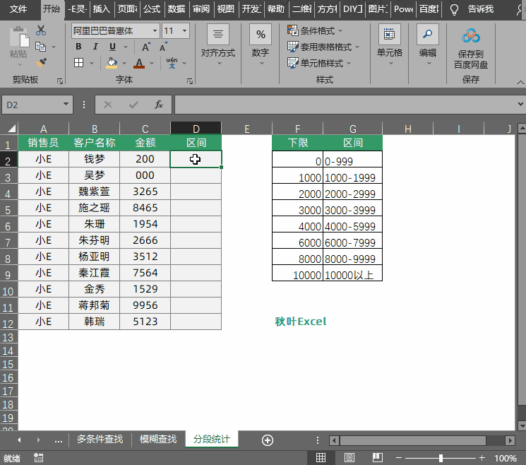❶ 使用了 VLOOKUP 近似匹配的特殊用法,第四参数,需用 True,或者 1;