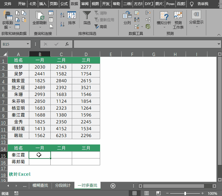 案例:根据「姓名」,查找一月、二月、三月的「销售额」。
