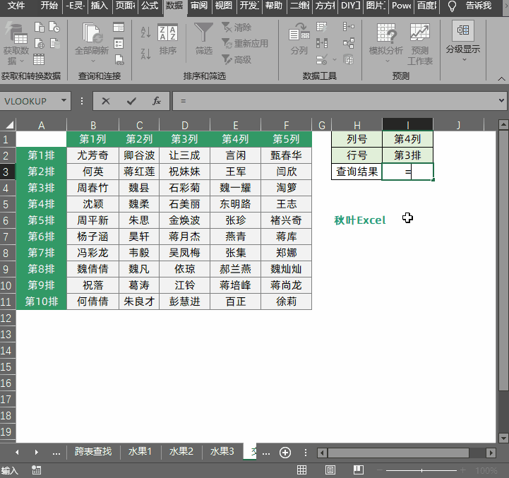 案例:查找区域「编号」列在返回区域「水果」列的左侧,可以使用 VLOOKUP+IF 函数来进行查找。