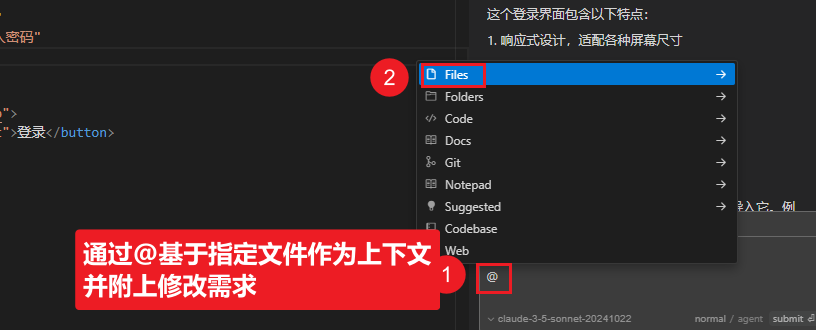 你还可以通过 @ 符号指定特定文件,为 Cursor 提供上下文参考。这样,Cursor 就能更好地理解你的意图,并据此修改或新增文件。