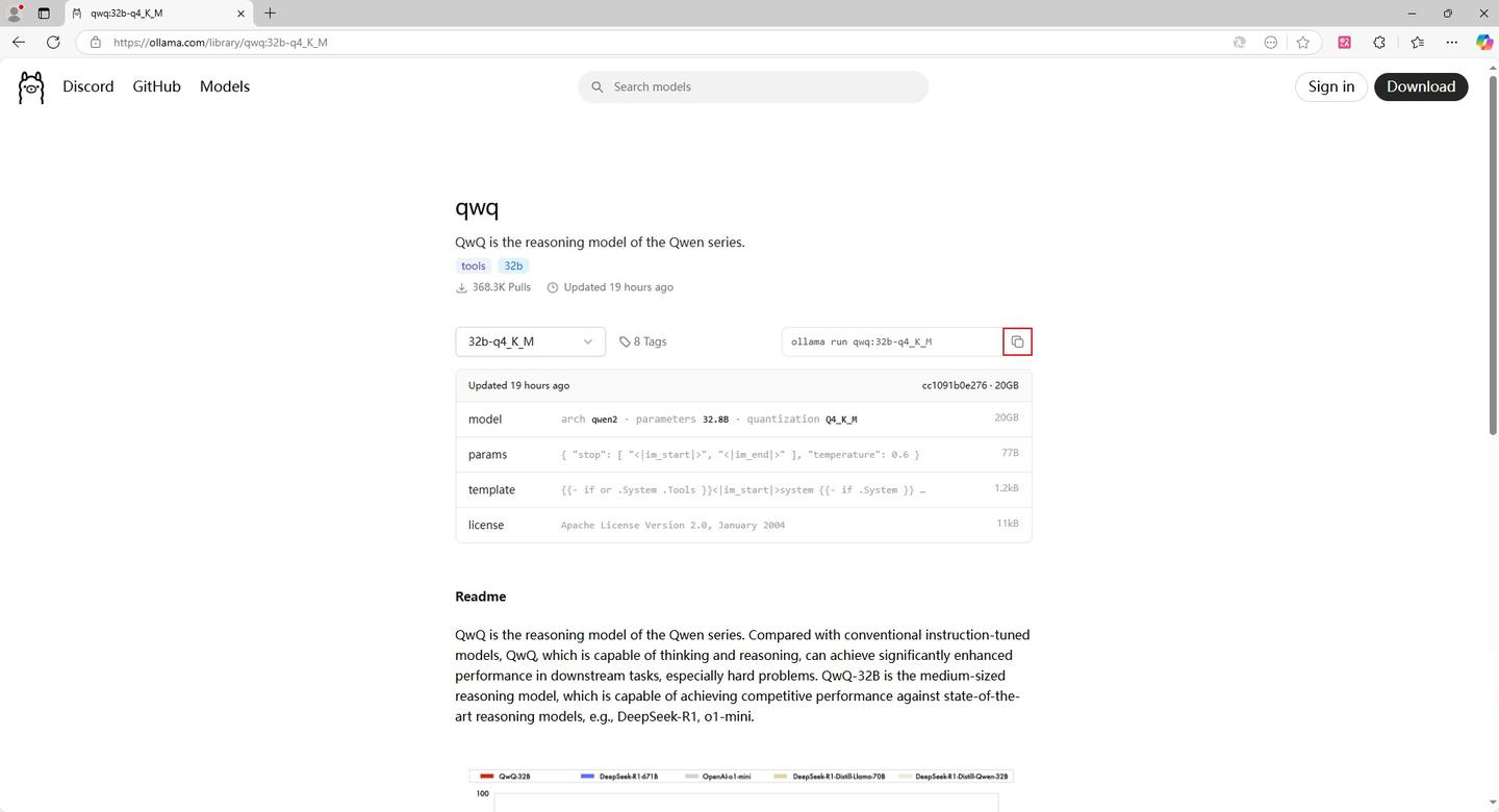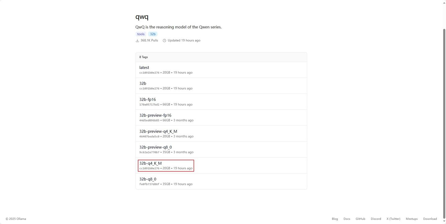 第一步:打开qwq的Ollama官网链接 https://ollama.com/library/qwq