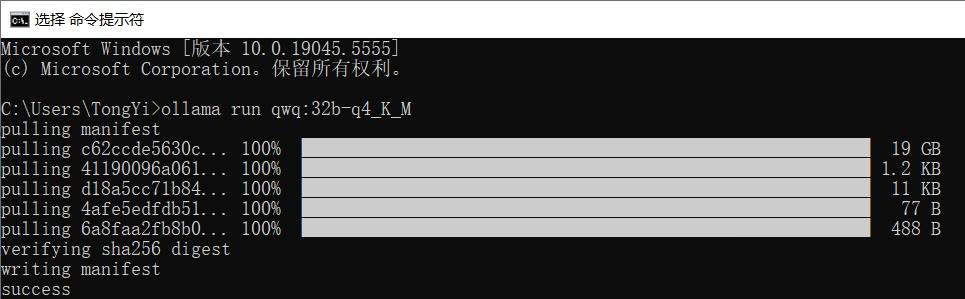 粘贴前面复制的命令(ollama run qwq:32b-q4_K_M):