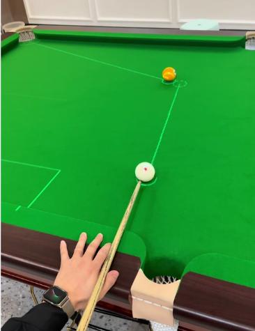 所谓“AI台球”,就是在台球桌上方,安装一台投影仪+摄像头,通过算法识别,把“打球进洞”的线路,投影到台球桌上,小白们朝着这个线路来练习台球基本功即可。