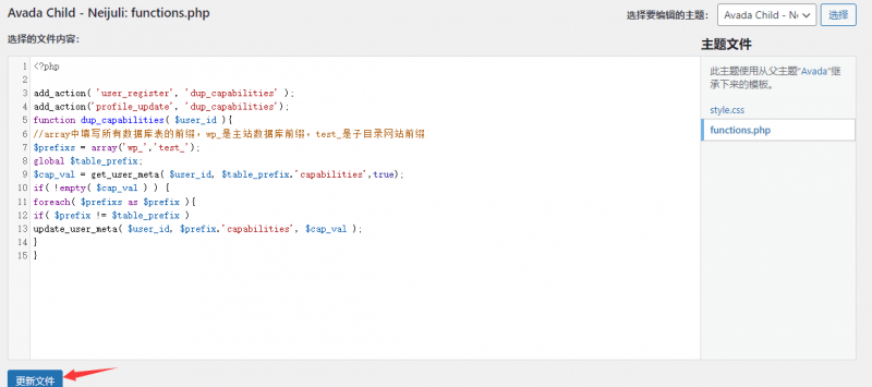 为了避免每个用户都需要插入一条数据,我们在主站的主题或者子主题中function.php文件中加入以下代码