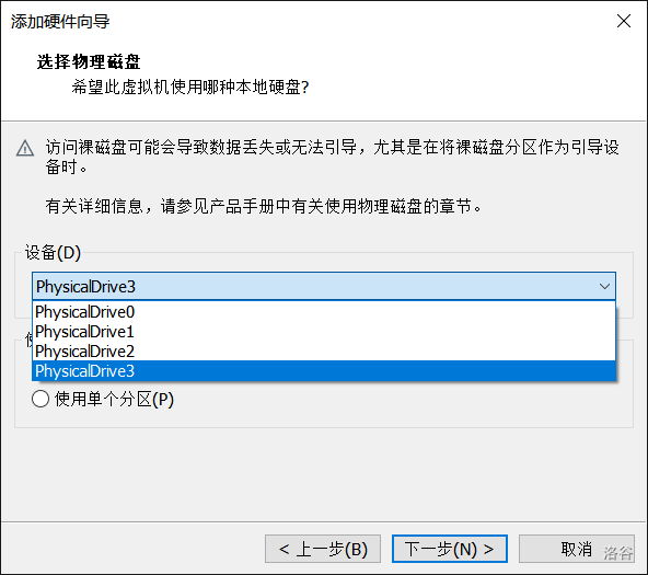 虚拟机设置 -> 添加 -> 硬盘 -> SCSI -> 使用物理磁盘 -> 选择自己的U盘,并使用整个磁盘