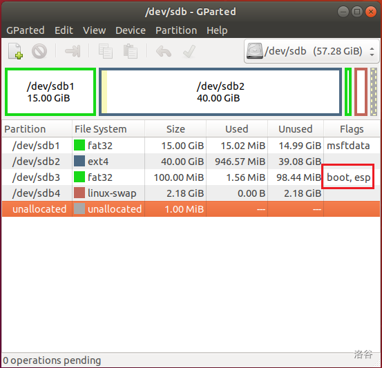 ESP分区(下图第三个)至少 100MB,设置 boot 和 esp 标识。