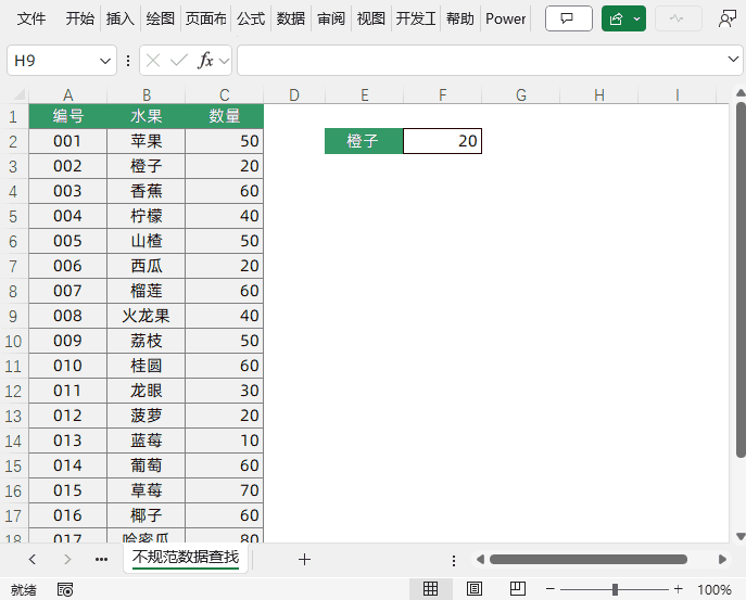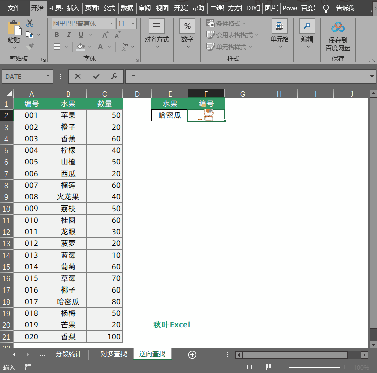 案例:查找区域「编号」列在返回区域「水果」列的左侧,可以使用 VLOOKUP+IF 函数来进行查找。