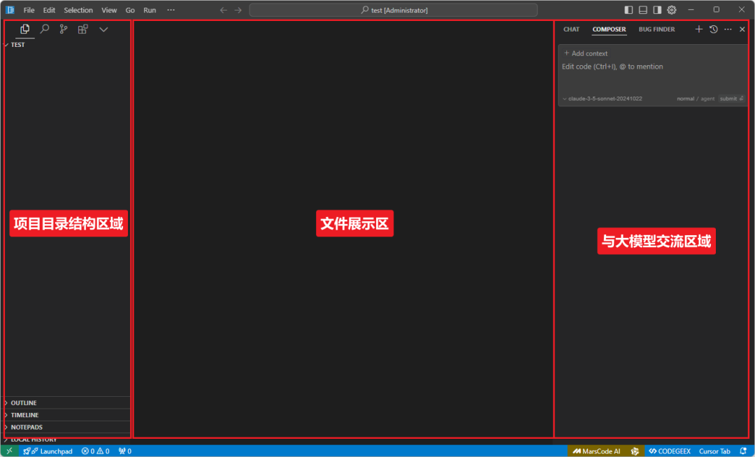 Cursor 的使用界面与 VS Code 基本一致,这对于熟悉 VS Code 的开发者来说无疑是个好消息。