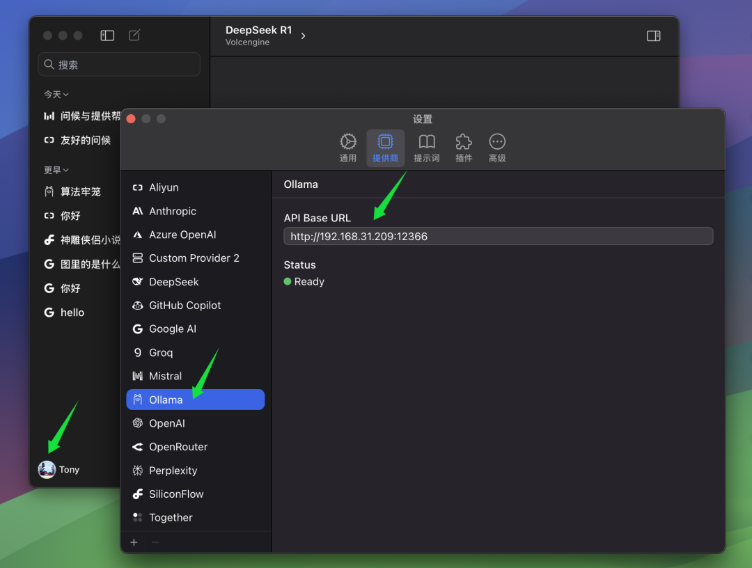 如果您的 ChatWise 客户端和 Ollama 服务运行在同一台计算机上,那么通常情况下,您无需进行任何额外的配置,打开 ChatWise 客户端即可直接使用 QwQ-32B 模型。 大部分用户都属于这种情况,即 Ollama 服务和客户端应用都安装在同一台设备上。