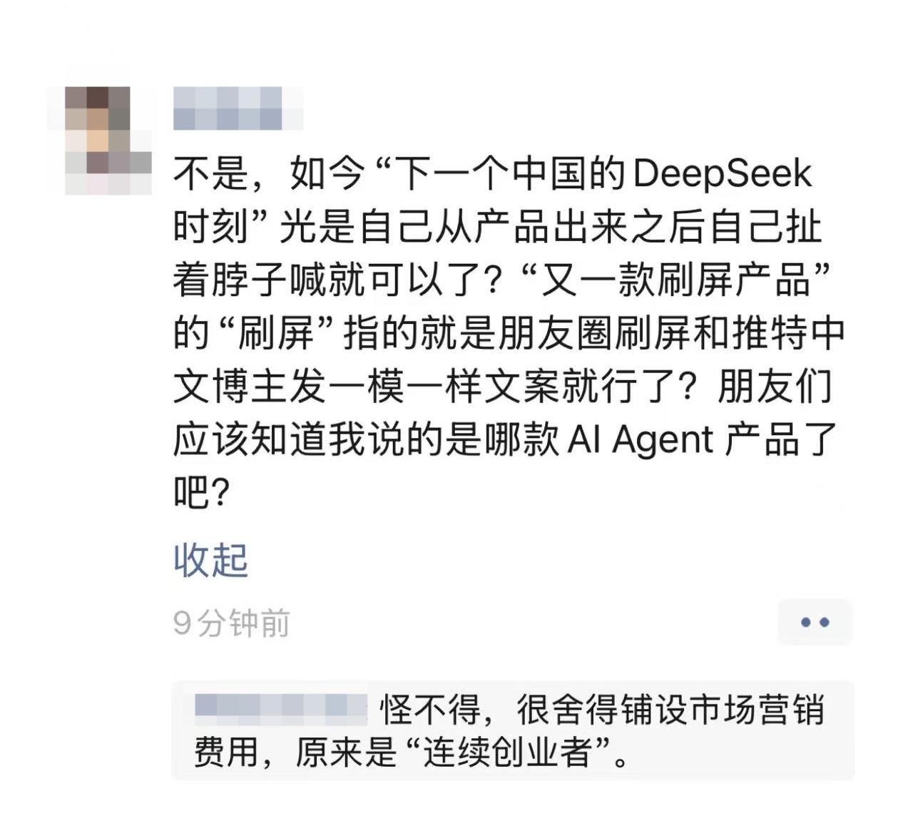 http://Monica.im的创始人肖弘(Red)被塑造为“连续创业天才”。其早期通过微信公众号工具盈利并出售,2022年借大模型浪潮转型AI领域,凭借海外市场产品ChatGPT for Google快速积累用户。Manus的营销重点在于“用户体验升级”——例如展示其能像“实习生”般解压文件、生成Excel表格,甚至记住用户偏好。通过社交媒体造势,用户为获取内测邀请码彻夜蹲守,进一步推高了市场期待。作为“连续创业者”创始人肖弘更引来不少科技大佬的“嘲讽”。