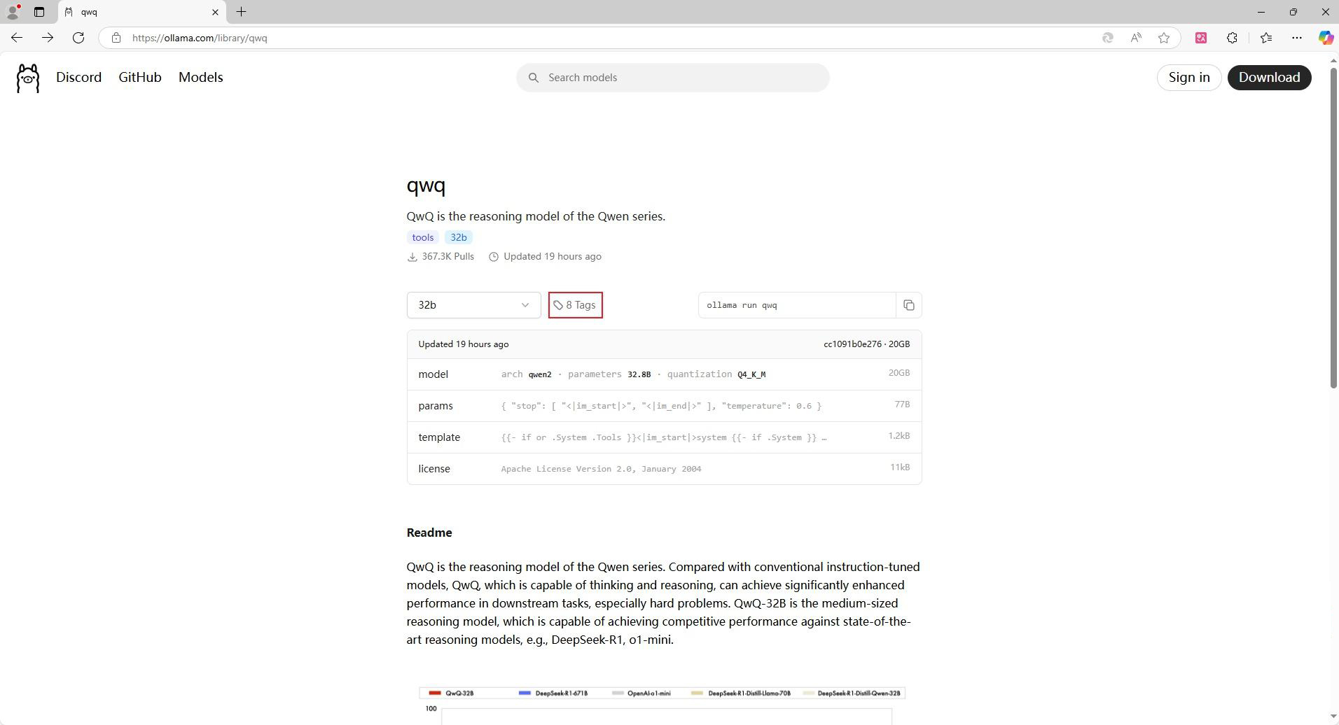 第一步:打开qwq的Ollama官网链接 https://ollama.com/library/qwq