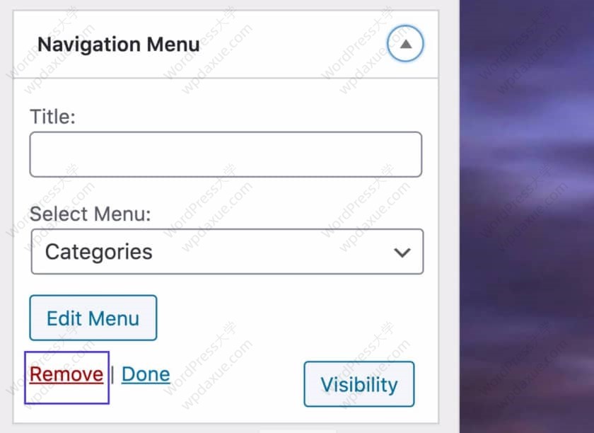 要在“小工具”屏幕中删除小工具,请找到该小工具,然后单击小工具设置框左下方的删除链接。