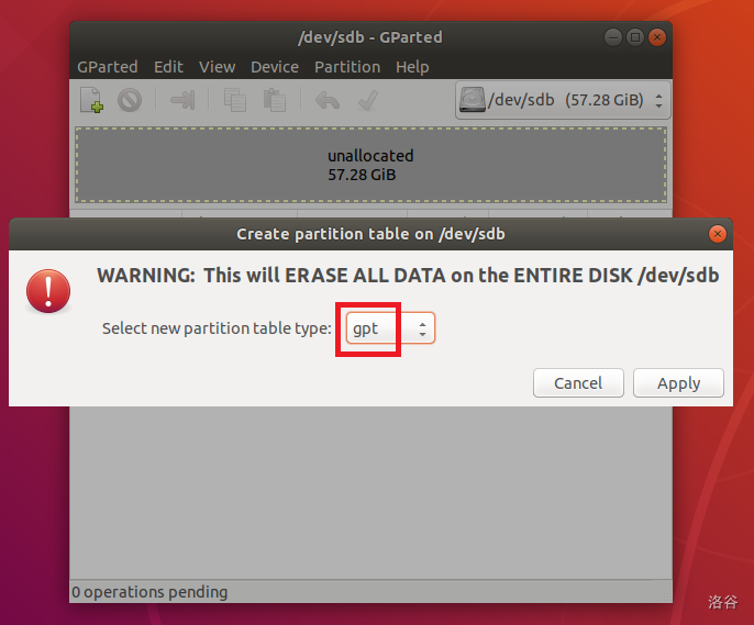 选择"Try Ubuntu without installing"。开机后启动 Gparted。